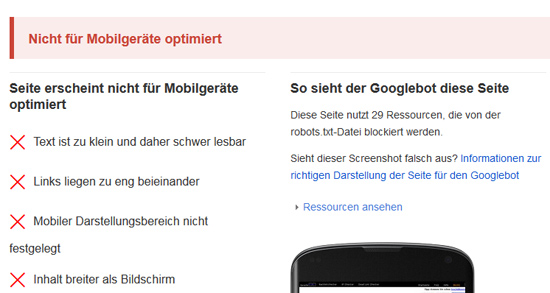 Übrigens: Wie gut die eigene Seite bereits optimiert ist, kann man mit dem Google-eigenen Test herausfinden, indem man die jeweilige URL einträgt.